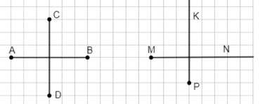 Отрезки \(AB \perp CD\), лучи \(MN \perp PK\). Они пересекаются, так как линии пересекаются в одной точке.