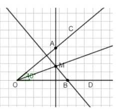 Развивай мышление. Постройте угол \(COD\), который равен \(40^\circ\). Отметьте точку \(A\) на стороне \(OC\) так, что \(OA=3\) см, и точку \(B\) на стороне \(OD\) так, что \(OB=3\) см. Проведите через точки \(A\) и \(B\) прямые, перпендикулярные сторонам \(OD\) и \(OC\). Обозначьте точку пересечения буквой \(M\). Измерьте транспортиром углы \(COM\) и \(DOM\). Сделайте предположение.