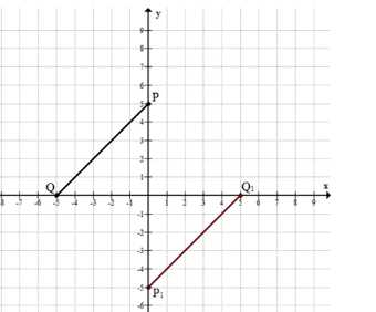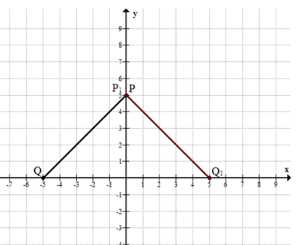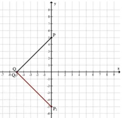 Постройте на координатной плоскости отрезок \(PQ\), если \(P(0;\ 5),\ Q(-5;\ 0)\). Постройте отрезок, симметричный отрезку \(PQ\) относительно: