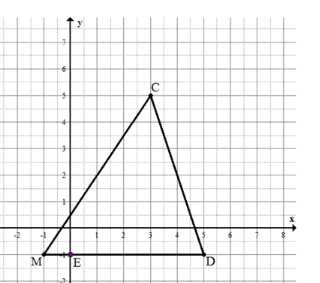 Постройте на координатной плоскости треугольник \(MCD\), если \(M(-1;\ -1),\ C(3;\ 5),\ D(5;\ -1)\). Найдите координаты точки пересечения стороны \(MD\) с осью \(y\).