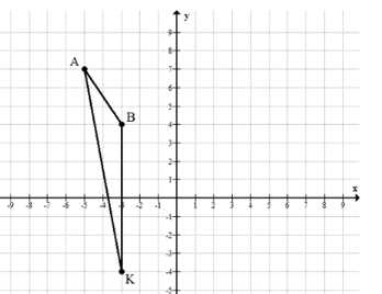 Рассмотрим треугольник \(ABK\) с вершинами \(A(-5; 7)\), \(B(-3; 4)\), \(K(-3; -4)\).