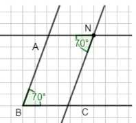Постройте угол \(ABC\), равный 70°. Отметьте точку \(N\), не лежащую на сторонах этого угла, и проведите через точку \(N\) прямые, параллельные сторонам угла \(ABC\). Измерьте угол \(N\).