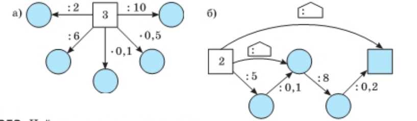 а) В первом примере мы начинаем с деления числа 3 на 10. Деление означает, что мы определяем, сколько раз число 10 помещается в 3. Поскольку 3 меньше 10, результат будет дробным числом: \(3 : 10 = 0,3\). Далее умножаем 3 на 0,5. Умножение на дробное число 0,5 эквивалентно делению на 2, поэтому \(3 \cdot 0,5 = 1,5\). Следующий шаг — умножение 3 на 0,1, что уменьшает число в 10 раз, давая результат \(3 \cdot 0,1 = 0,3\). После этого делим 3 на 6, что показывает, сколько раз 6 помещается в 3, и результат \(3 : 6 = 0,5\) — это половина. В конце делим 3 на 2, получая \(3 : 2 = 1,5\), то есть число 3 в полтора раза больше 2.