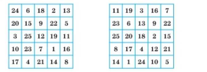 Ответ: обе таблицы содержат полный набор чисел от 1 до 25; их можно найти устно по порядку \(1,2,\dots,25\), проходя клетки последовательно.