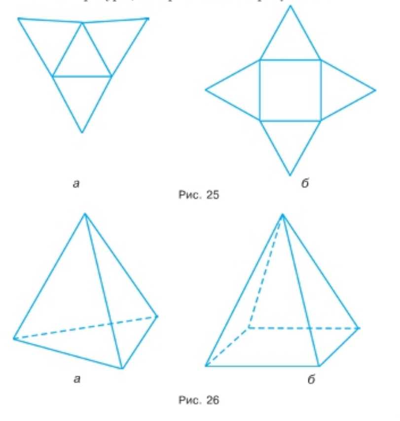 Вырежьте из плотной бумаги фигуры, показанные на рисунке 25, и склейте фигуры, изображённые на рисунке 26.