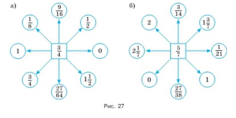 Подумайте, как из числа, записанного в центре (рис. 27), можно получить числа, записанные в кружках.
