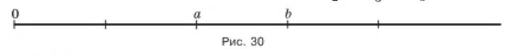 На координатном луче отмечены числа \(a\) и \(b\) (рис. 30). Можно ли указать на луче точку с координатой \(a:\frac{1}{2}\); \(b:\frac{1}{3}\); \(a:\frac{2}{3}\)?