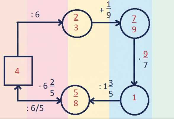 б) Сначала делим 4 на 6, записывая это как дробь: \( \frac{4}{6} \), которую сокращаем до \( \frac{2}{3} \). Следующий шаг — сложение \( \frac{2}{3} \) и \( \frac{1}{9} \). Приводим к общему знаменателю 9: \( \frac{2}{3} = \frac{6}{9} \). Складываем: \( \frac{6}{9} + \frac{1}{9} = \frac{7}{9} \).