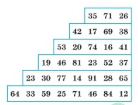 Для развития памяти предложено упражнение с таблицей чисел, которая имеет форму ступенчатой пирамиды. Ваша задача — закрыть таблицу листом бумаги, открыть на несколько секунд только первую строку, запомнить три числа этой строки, затем снова закрыть и постараться воспроизвести или записать эти числа. Если вы правильно воспроизвели все три числа первой строки, переходите ко второй строке, где уже четыре числа, и повторяете ту же процедуру. Таким образом, упражнение постепенно увеличивает нагрузку на память, тренируя способность запоминать всё большее количество двузначных чисел.