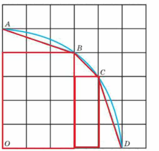 \( 18{,}5 < 19{,}625 \), значит площадь пятиугольника меньше площади четверти круга. 5) Вывод: площадь пятиугольника, ограниченного отрезками и дугами внутри квадрата, меньше площади соответствующей четверти круга с радиусом 5 см. Это подтверждается точным подсчётом клеток и вычислением площади круга по формуле. Таким образом, можно сделать заключение, что площадь фигуры, ограниченной дугой круга, больше, чем площадь пятиугольника, построенного внутри той же области.