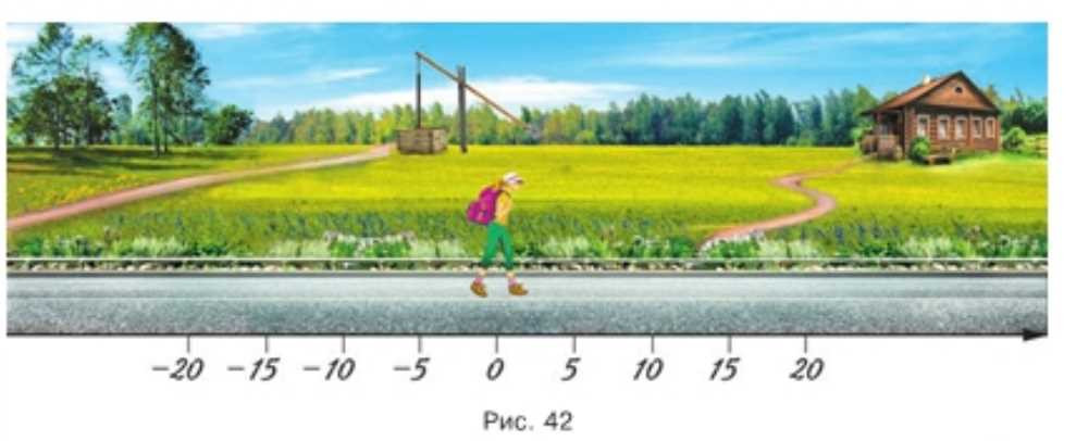 Считаем: \(vt=5\cdot(-4)=-20\) (км). Значит, четыре часа назад турист находился на координате \(-20\) км относительно \(0\), то есть от точки \(0\) в отрицательном направлении на \(20\) км.
