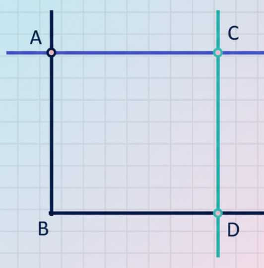 Вертикальная и горизонтальная прямые перпендикулярны, поэтому все углы прямые, следовательно, \(ABCD\) — прямоугольник.