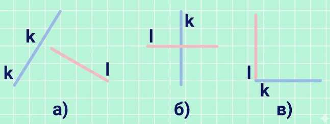 б) Пересекались: \(l\) и \(k\) пересекаются в одной точке (крест).