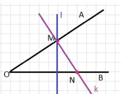 Следовательно, \(\angle(l,k)=\angle AOB\).