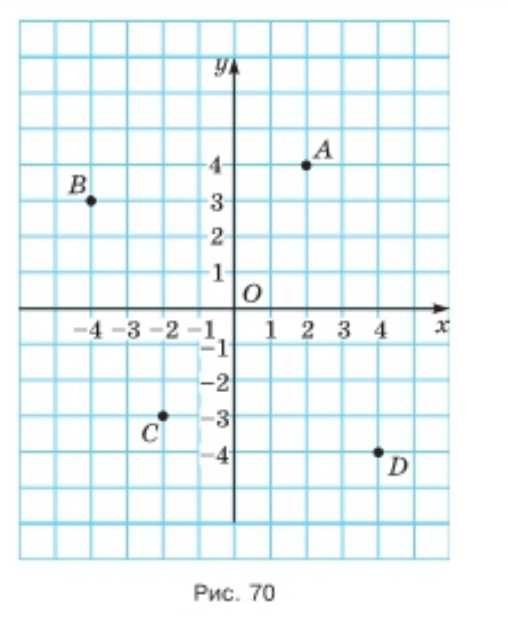 Найдите координаты точек \(A\), \(B\), \(C\) и \(D\) (рис. 70).