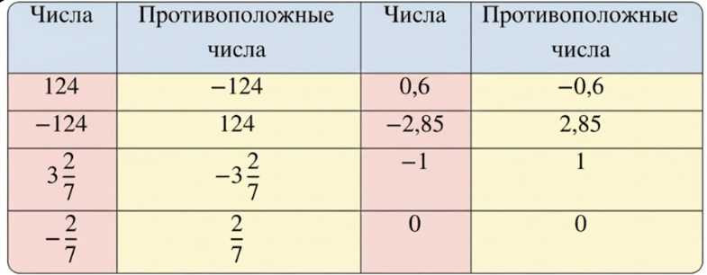 Числа и их противоположные значения: