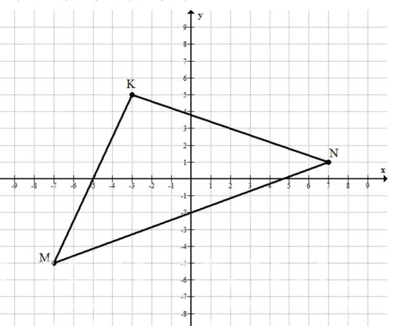 Точки: \(M(-7;-5)\), \(K(-3;5)\), \(N(7;1)\). Соединяем \(M\), \(K\), \(N\) — получаем треугольник \(MKN\).
