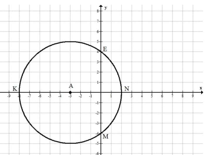 Итак, координаты пересечения окружности с осями координат: \(K(-8;0)\), \(E(0;4)\), \(N(2;0)\), \(M(0;-4)\).