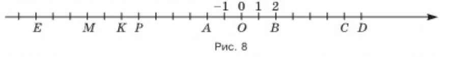 Для удобства и наглядности записываем координаты всех точек в одном списке: \(O(0)\), \(A(-2)\), \(B(2)\), \(C(6)\), \(D(7)\), \(P(-6)\), \(K(-7)\), \(M(-9)\), \(E(-12)\). Здесь отрицательные координаты указывают на расположение точек слева от начала координат, а положительные — справа. Это важно для понимания взаимного расположения точек на числовой прямой и для последующих вычислений расстояний между ними.